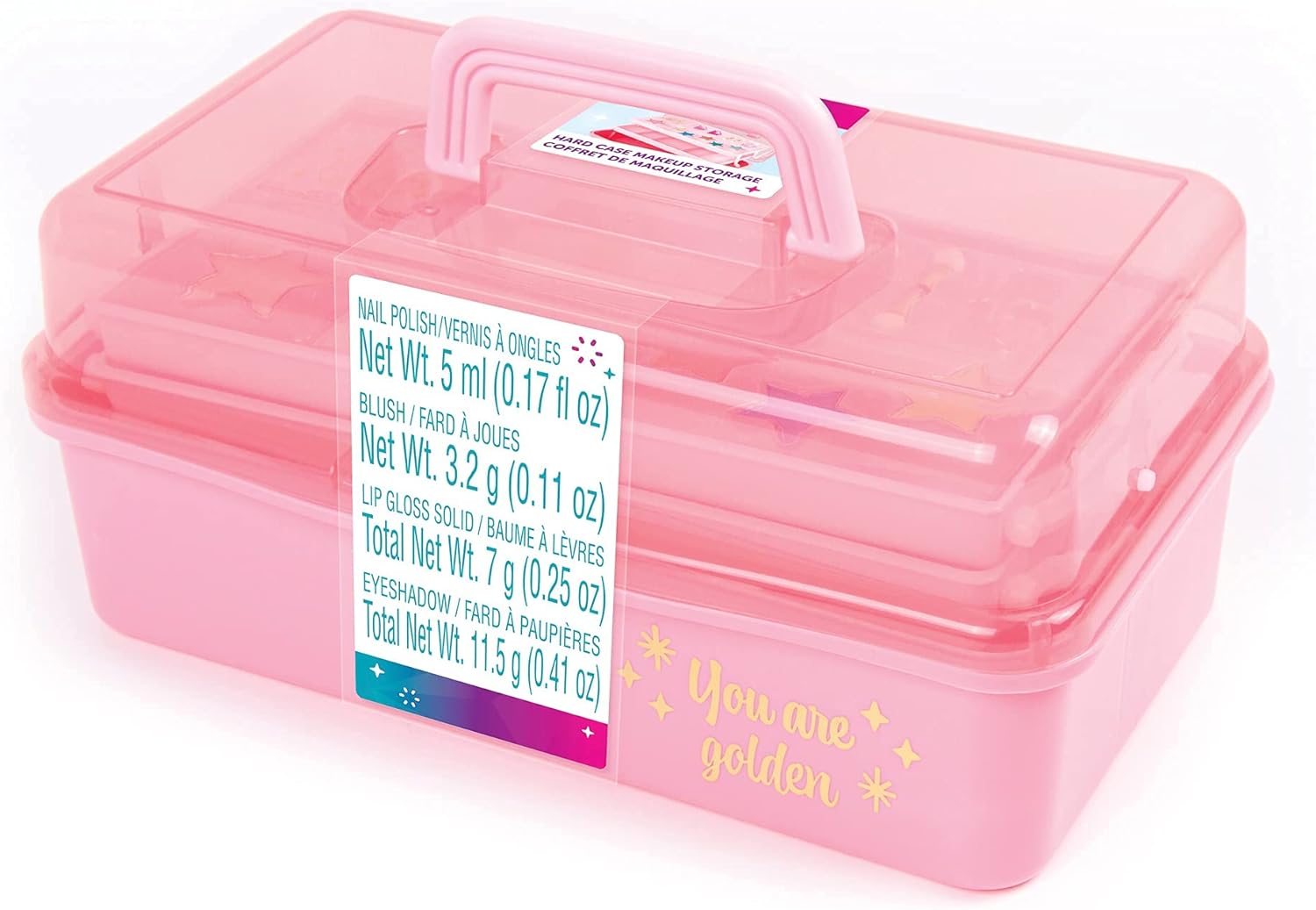 3C4G THREE CHEERS FOR GIRLS - Pink and Gold Hard Case Makeup Storage Set - Kids Makeup Kit for Girls and Teens - Includes Storage Case, 5 Eyeshadows, 1 Blush, 2 Lip Glosses & 1 Nail Polish - Ages 8+
